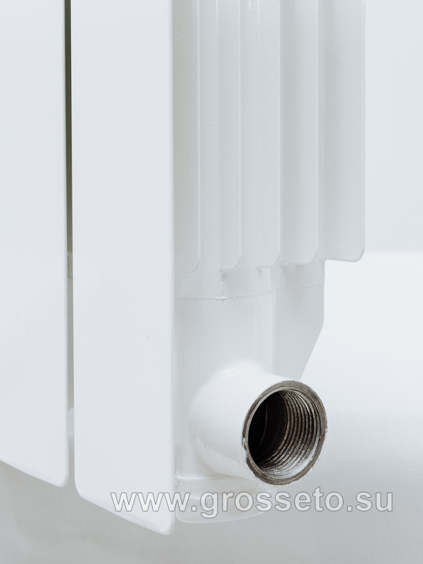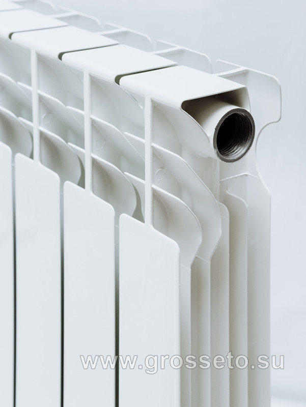 Алюминиевые литые секционные радиаторы «Grosseto» производятся по самой современной технологии. Отопительные приборы имеют высококачественное покрытие, которое проводится в семь этапов с фосфохромированием и напылением порошковых эпоксиполиэфирных эмалей белого цвета RAL 9016, а затем нанесением специальной краски класса «А», придающей радиатору блеск и завершенный внешний вид.
